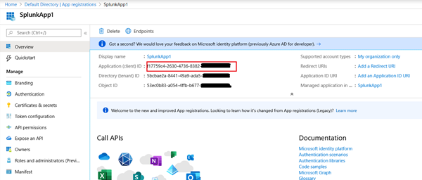 The Azure Active directory allows registering apps that can have specific permissions. We will need to create an app registration with the least allocated permissions just enough for it to access the logs from the log analytics workspace. Go to Azure Active directory and create a new App registration. For this example I named the APP “SplunkApp1”