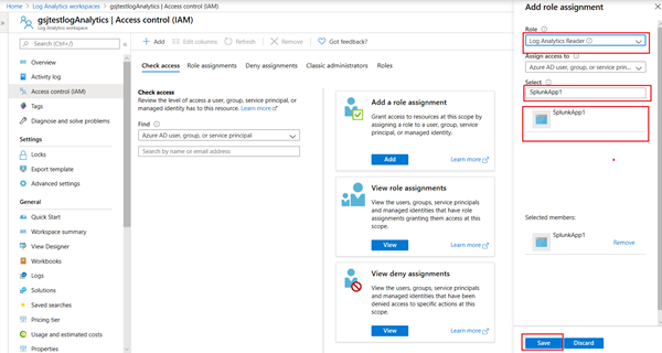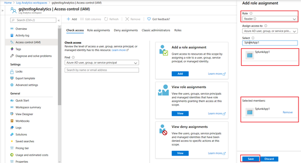 Repeat the steps above to add the role “Log Analytics Reader” as shown below.
