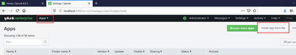 You can alternatively use a containerized version of Splunk as a test. For the purpose of this excercise I downloaded and installed a free version of Splunk Enterprise and installed Splunk on the VM. After the Splunk enterprise application is installed, open the browser and login to the splunk console. Download the Splunk app (add-on) from https://splunkbase.splunk.com/app/4127/ and then from the splunk console, click “Splunk App”. Then from the apps menu on the top select “Manage apps”