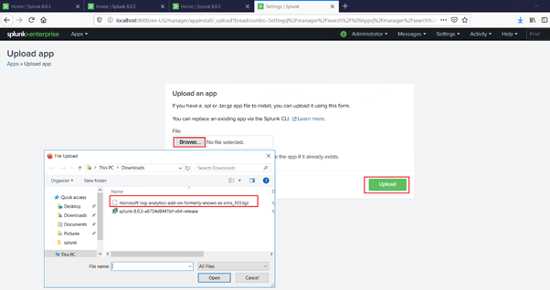 This should install the “Microsoft Log Analytics app” for splunk as shown in the screen shot below.