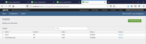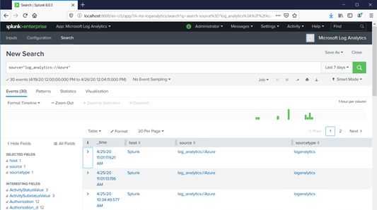 In a few minutes you should start seeing logs from Log analytics appearing in Splunk