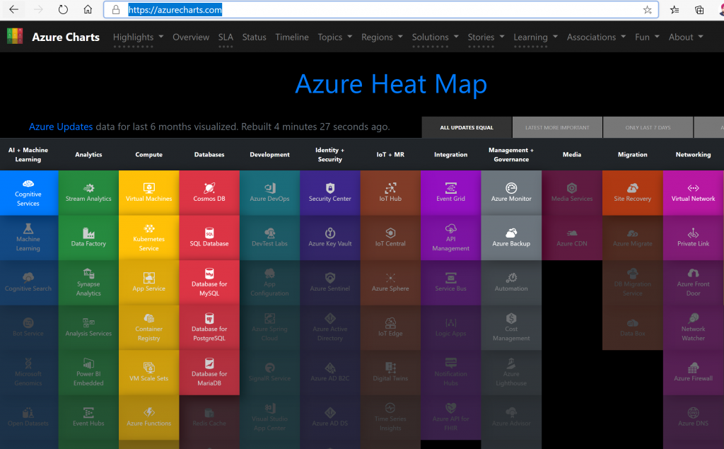The website highlights the changes happening to each Azure resource. Hovering the mouse over an item shows quick tips on how many changes were made related to the resource type. Example