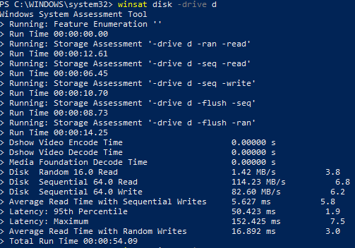 winsat disk -drive d
