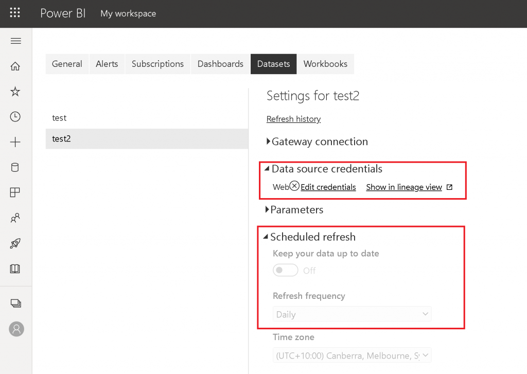 Step 11: Remember to setup a credentials for the report dataset under your workspaces and a scheduled refresh to fetch data from log analytics